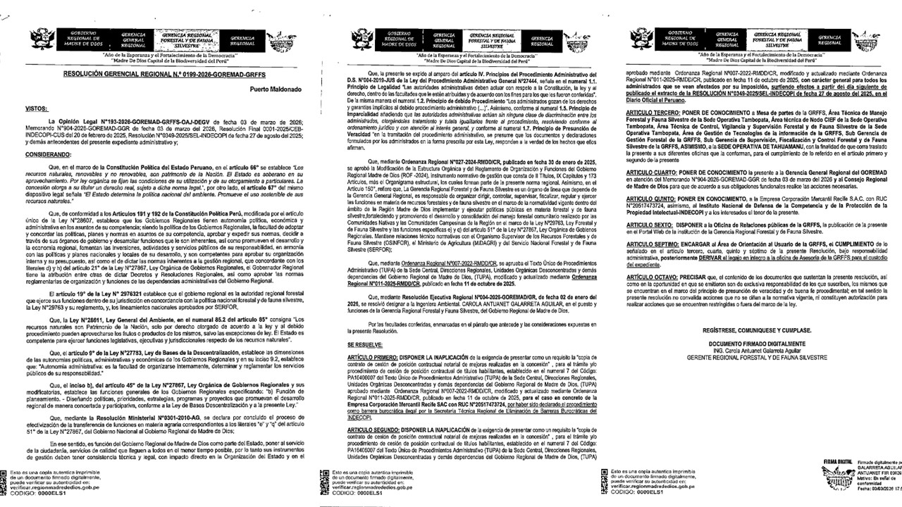 RESOLUCION GERENCIAL REGIONAL NºO199-2026-GOREMAD-GRFFS