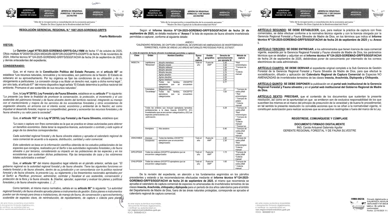 RGR Nº1687-2025-GOREMAD-GRFFS de fecha 22/10/2025. INFORME TECNICO Nº124-2025-GOREMAD-GRFFS/SGGF/AChH de fecha 24/09/2025.