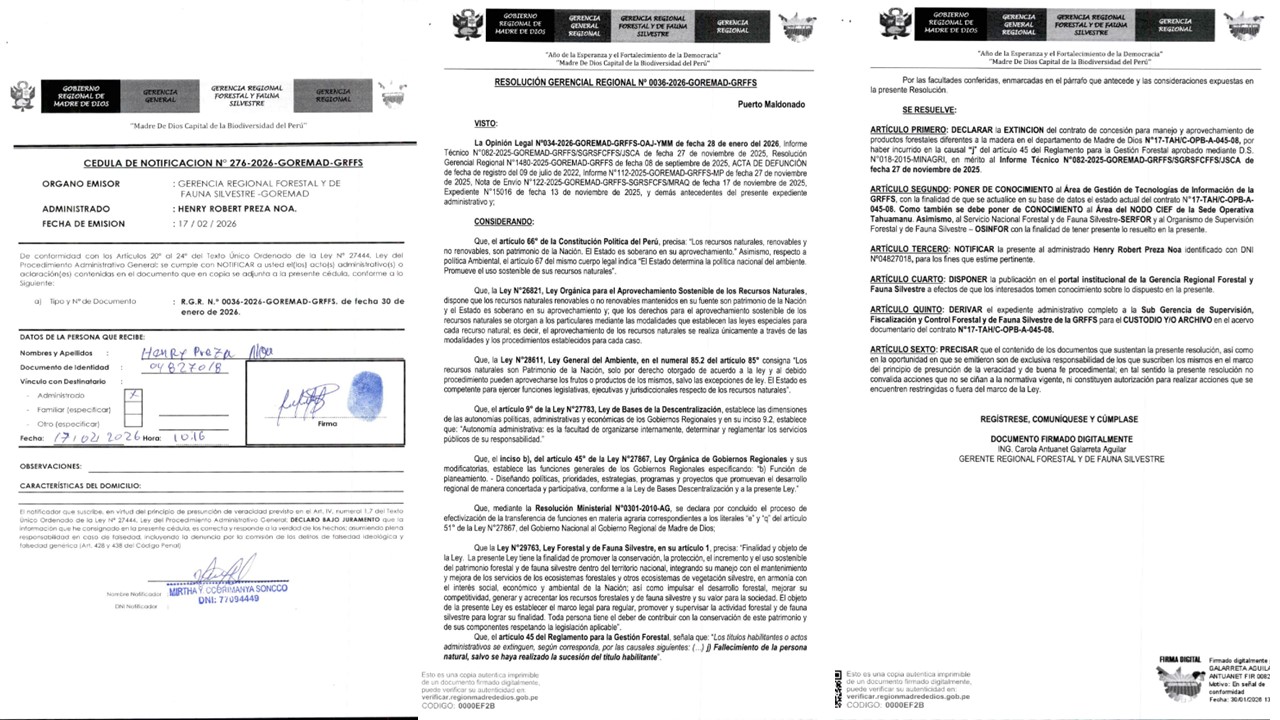 RESOLUCION GERENCIAL REGIONAL Nº0036-2026-GOREMAD-GRFFS