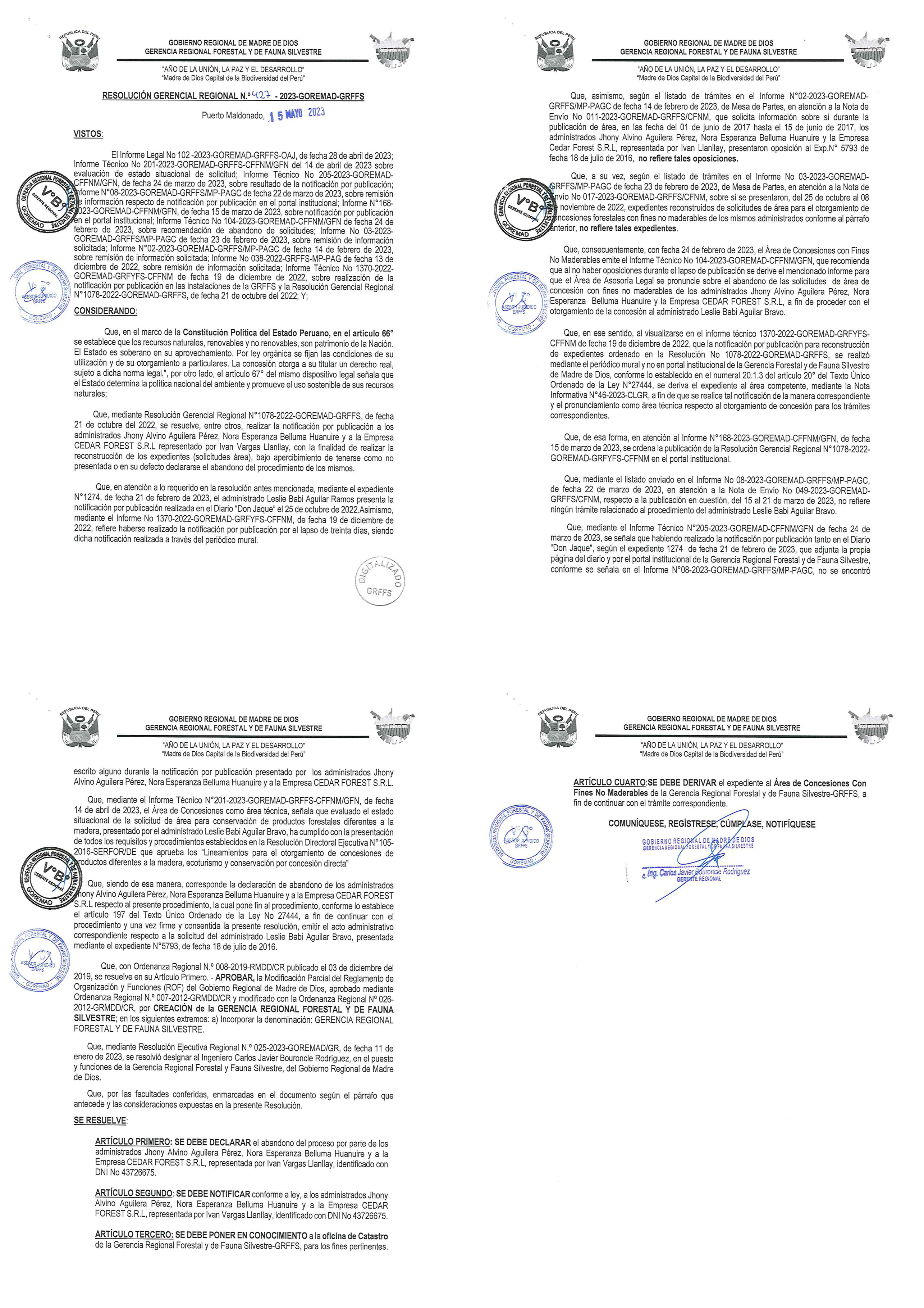 Publicacion de resolucion Gerencial Regional 427-2023-GOREMAD-GRFFS