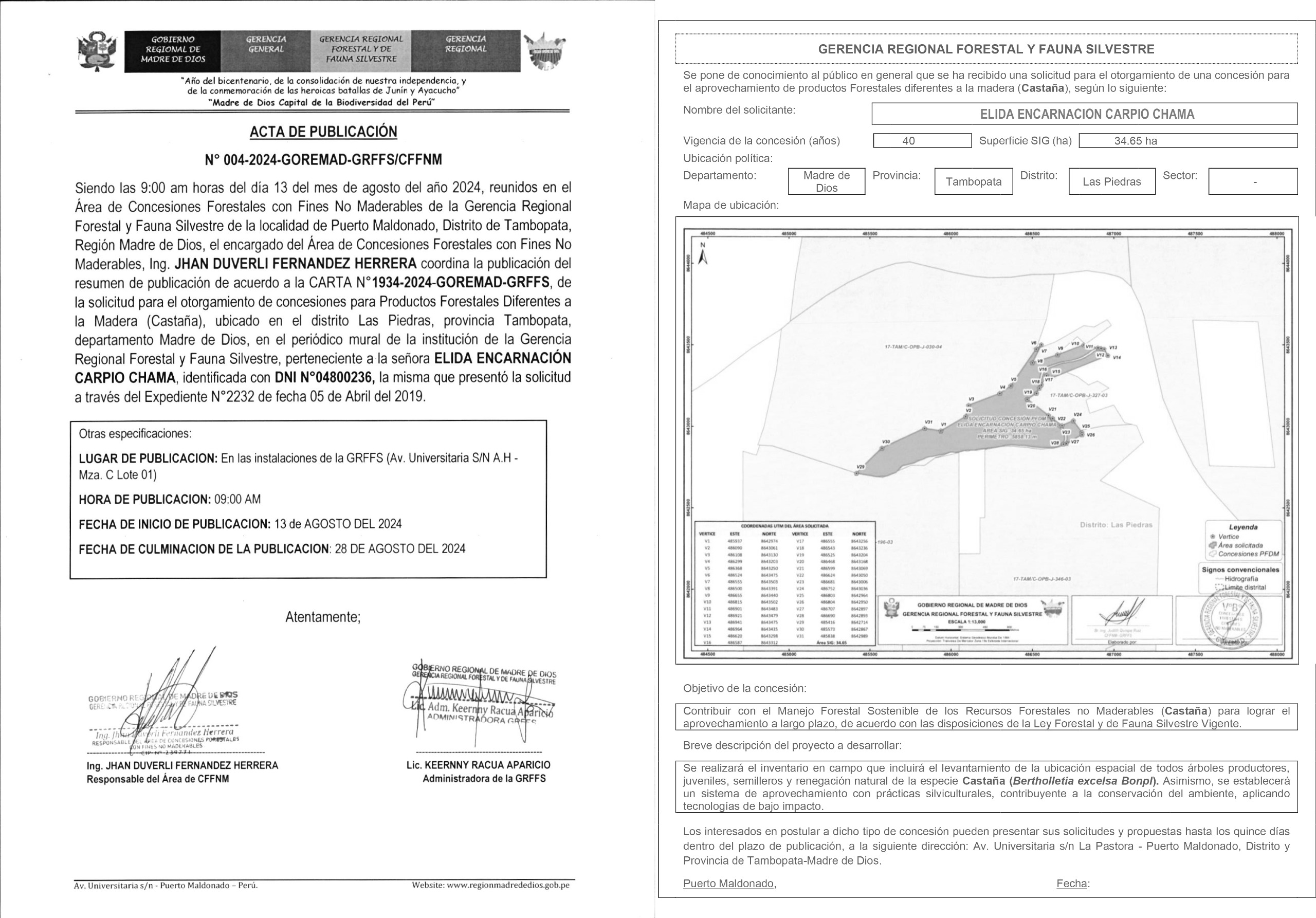 ACTA DE PUBLICACION Nº004-GOREMAD-GRFFS/CFNM ELIDA ENCARNACION CARPIO CHAMA DNI Nº 04800236