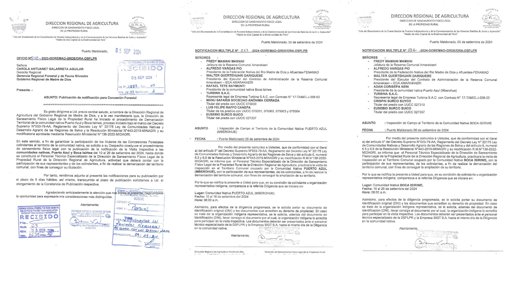 NOTIFICACION MULTIPLE Nº 033- 2024-GOREMAD- GRDE/DRA-DSFLPR FREDY MAMANI MAMANI, ALFREDO VARGAS PIO, WALTER QUERTEHUARI DARIQUEBE, RAFAEL TETE RAYMONTI, TURBINA SAC, MANU SAFARIS SOCIEDAD ANO