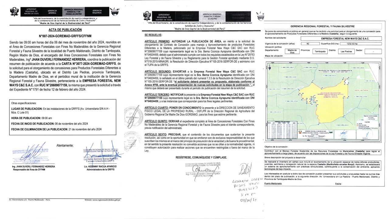 ACTA DE PUBLICACION N°007-2024-GOREMAD-GRFFS/CFFNM. EMPRESA FORESTAL NEW WAYS C&C SAC. con RUC. 20609077159.