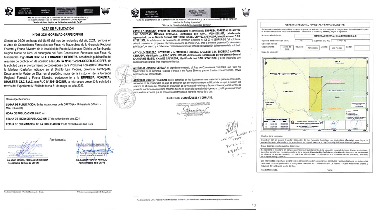 ACTA DE PUBLICACION N°006-2024-GOREMAD-GRFFS/CFFNM. EMPRESA FORESTAL KHALEESI C&C S.A.G. con RUC Nº20610902457