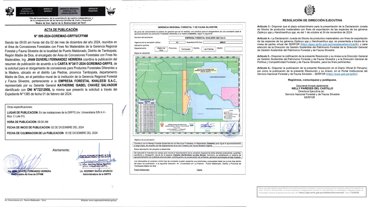 ACTA DE PUBLICACION Nº009-2024-GOREMAD-GRFFS/CFFNM. EMPRESA FORESTAL KHALEESI S.A.C., REPRESENTADO POR KATHERINE ISABEL CHAVEZ SALVADOR CON DNI. 72212958.