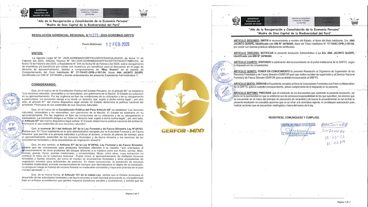 SOBRE OTORGAMIENTO DE INCENTIVOS Y/O BENEFICIOS POR CONTAR CON INCENTIVOS Y/O BENEFICIOS PARA EL DESCUENTO EN EL PAGO DE DERECHO DE APROVECHAMIENTO, DEBIDO A COMPORTAMIENTO “MUY BUENO” EN EL REPORTE DE COMPORTAMIENTO DEL TITULO HAILITANTE N.º 17-TAH/C-OPB-J-107-04 TITULAR ANA JACINTO QUISPE, IDENTIFICADA CON DNI N.º 24700494.