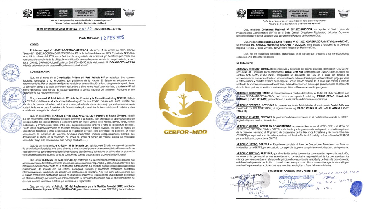 SOBRE OTORGAMIENTO DE INCENTIVOS Y/O BENEFICIOS POR CONTAR CON CONSTANCIA DE CUMPLIMIENTO DE OBLIGACIONES/CALIFICACION DE MUY BUENO EN REPORTE DE COMPORTAMIENTO, A FAVOR DEL SR. DANIEL GRIFA NOA, IDENTIFICADO CON DNI N.º 04818456 TITULAR DEL CONTRATO Nº17-TAM/C-OPB-A-212-04.