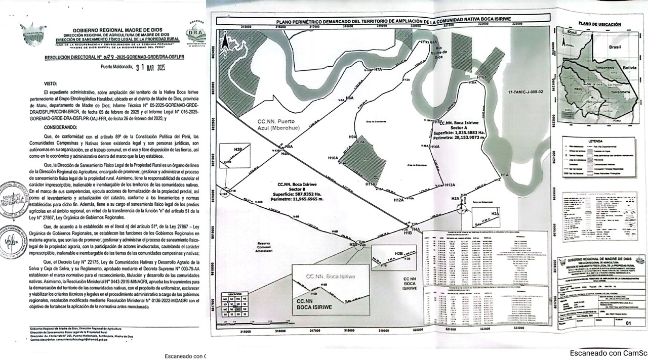 El expediente administrativo sobre ampliación del territorio de la comunidad nativa Boca Ishiriwe, perteneciente al grupo etnolinguistico Harakbut, ubicada en el distrito de Madre de Dios provincia de Manu, Departamento de Madre de Dios; Informe Técnico Nº 05-2025-GOREMAD/GRDE/DRA/DSFLPR-UCN-BRCR; de fecha 05 de febrero del 2025, Informe Legal Nº016-2025-GOREMAD-GRDE-DRA/DSFLPR-OAJ-FFR, de fecha 26 de febrero del 2025.