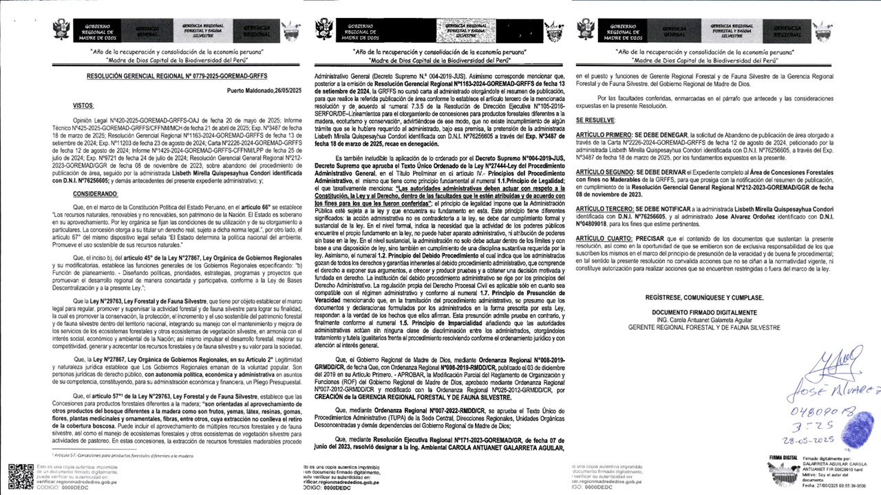 RESOLUCION GERENCIAL REGIONAL Nº0779-2025-GOREMAD-GRFFS